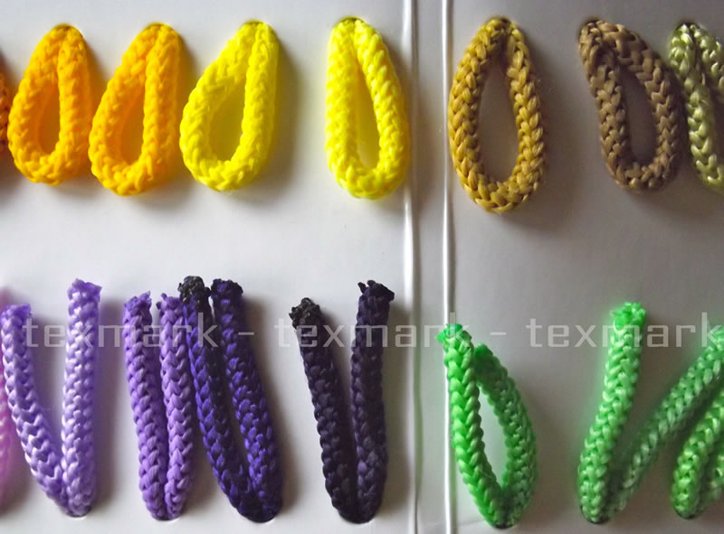 Nous avons cordons rigide et élastique pour tous les types d'applications, en polyester ou en coton, avec une variété de couleurs et d'épaisseurs de 1 à 10 mm. Nous fabriquons également des lacets fantaisie d'or et d'argent pour la décoration et l'emballage.